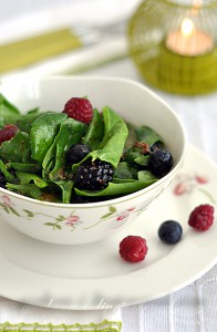 gerbera1! Самый обычный шпинат и самые доступные ягоды или фрукты - и у вас на обед легкий, полезный, витаминный салат, который просто брызжет цветом, соком, ароматом!