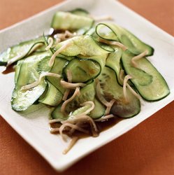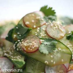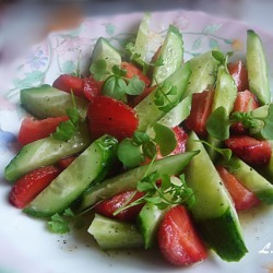 Продолжая огуречную эпопею, я решила, что мы скучно живем: салат с огурцами у меня на столе появляется исключительно в виде небольших кусочков сметанной или масляной заправке с укропом. Надо что-то новое! Добавить яблоки? Или имбирь? Соединить огурцы с клубникой? Или приготовить японский вариант с редисом?