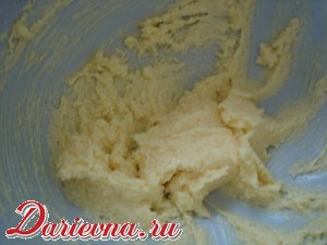 Размягченное масло взбить с сахаром. Добавить яйцо и желток, взбивать в однородную пышную массу.