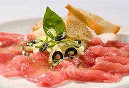 Карпаччо – это итальянское блюдо, которое подается как холодное блюдо или закуска. Традиционно карпаччо готовят из тонко нарезанного сырого говяжьего мяса, приправленного оливковым маслом, уксусом и/или лимонным соком. В последнее время в Италии большую популярность приобрело карпаччо из грибов, морепродуктов, овощей, фруктов, а также из свежей рыбы, в частности, карпаччо из тунца. Это блюдо прибавит ярких красок вашему новогоднему столу. Будьте осторожны, наш славянский организм не привык к перевариванию сырого мяса и рыбы, поэтому не стоит есть большое количество карпаччо из тунца.