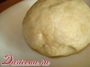 Вбить маргарин и творог, добавить соль, муку и замесить тесто. Муки должно быть столько, чтобы тесто не липло к рукам. Поэтому ее может понадобиться больше.