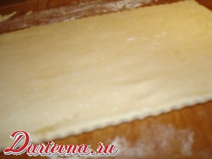 Раскатать тесто (каждую часть отдельно) в прямоугольник. Толщина теста должна быть примерно 0,5 см.