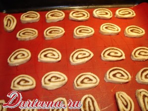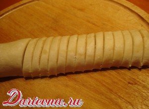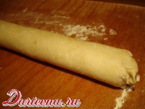 Положить обе части в холодильник на 2 часа. Духовку разогреть до 200 градусов. Достать тесто из холодильника. Если оно еще мягкое, необходимо положить его минут на 10-20 в морозильную камеру.