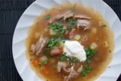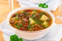В моей семье к фасоли относятся более, чем прохладно, однако, мамина страсть к правильному питанию детей иногда вынуждает моих родственников терпеть на обед фасолевый суп - ну, просто потому, что я свято верю в полезность бобовых и периодически все же пытаюсь приучить несговорчивый народ к здоровому образу жизни. Как правило, я отвариваю фасоль в огромных количествах, а потом просто замораживаю, чтобы при необходимости достать готовый продукт из морозилки и не тратить кучу времени на превращение твердых красавчиков в податливую съедобность. И вот в таком варианте мне даже не лень варить фасолевые супы, потому что получается довольно легко и быстро.