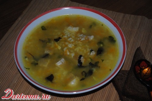 За 5 минут до готовности добавить лавровый лист и мелкорубленную зелень. После выключения накрыть крышкой и дать настояться около 20 минут.