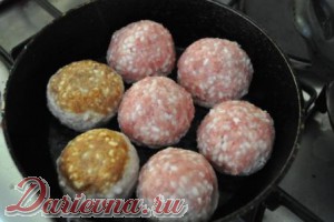 На растительном масле обжариваем тефтели с обеих сторон, выкладываем в кастрюлю с толстым дном.