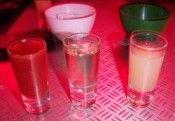 Первый называется «БандЭра» (bandera), в переводе с испанского – флаг, сейчас вы поймете, почему. Основные цвета мексиканского флага – красный, белый, зеленый. «Бандэра» состоит из трех частей. В первой стопке подается «сангрИта» (sangrita), ее основа – томатный сок со специями (еще в нее можно добавить часть лимонного и апельсинового сока). Во второй – текила (белая, можно и «репосадо»). В третьей стопке подается выжатый лимонный сок. В полном боекомплекте «бандэру» делать не обязательно. Можно пить текилу только с сангритой или только с лимонным соком, а можно сангриту сразу смешать с соком, все зависит от собственных предпочтений.