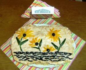 Елена Алешина предлагает еще один конкурсный рецепт, что нас, честно, очень радует: "Пишу Вам не в первый раз, добрый день! Хочу выставить еще одну работу на конкурс. Сегодня у моего мужа день рождения. Я, естественно, готовила много проверенных временем салатов и закусок. Но, как человек творческий, очень люблю экспериментировать. И, как специально, попался на глаза рецепт из газеты. Вот и решила попробовать. Мужу очень понравилось!"