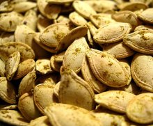 Повторяться не будем. Но вот еще один рецепт, как приготовить тыквенные семечки, с удовольствием опубликуем. Мне он понравился нестандартностью: как-то все уже привыкли к простым подсушенным в духовке тыквенным семечкам… А если добавить масло, чеснок, перец и соль? Получатся необычные и очень вкусные тыквенные семечки по-восточному!