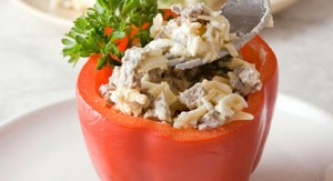 Красиво, правда? А готовится очень просто! И получается достаточно сытно - перцы фаршируются мясом, сыром, яйцами. Так что если вам нужна основательная закуска, то смело берите на вооружение этот рецепт сайта recepti.coolreferat.com.