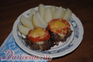 Помидор режем на кольца толщиной 5мм и кладем поверх котлет.