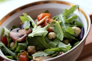 Мне тоже кажется, что должно получиться очень хорошо - зелень базилика и рукколы, жареные шампиньоны в сочетании с сочными помидорами и цельным фундуком... Все, бегу на кухню!