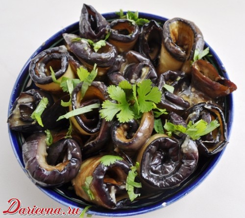 Баклажаны - моя любовь. Обожаю из печеными и жареными, вареными и маринованными, с зеленью, чесноком, маслом, овощами и просто так. Могу их есть на завтрак, обед и ужин. Кстати, вот этот рецепт - как раз из разряда таких, что можно есть в любое время суток: сначала я подаю овощи в теплом виде, как правило, на ужин, а потом мы поглощаем уже остывший вариант, который получается не менее вкусным.