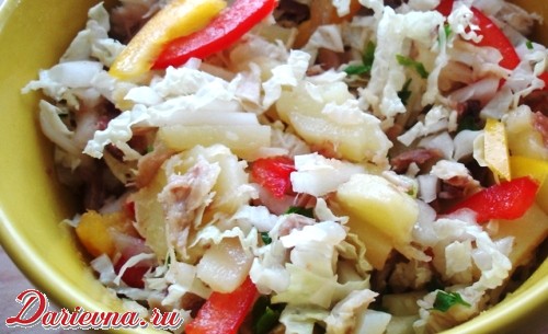Пестрый салат с куриным филе и пекинской капустой