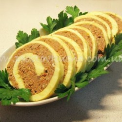 Печеночный рулет в омлете красив невероятно! Печенка с сыром - нестандартно, но наверняка очень вкусно. А как насчет капельки острого красного перца? Пикантно же! Добавив в сливочное масло любую зелень, получим новые оттенки - и цвета, и вкуса.
