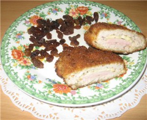 "Котлеты по-киевски я готовлю не классические, из курицы, а из свинины. Дело в том, что дочка моя мясо не ест, нет, конечно насильно в нее запихнуто что-то можно, но вот добровольно ест только вот такие котлеты. Попробуйте, это очень вкусно!"