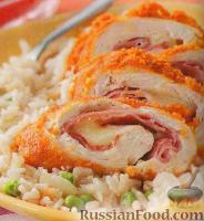 Искусные повара, настоящие профессионалы удостаиваются звания «Сordon Blue» (Кордон Блю). Несколько столетий назад, во Франции так называли голубую ленту, на которой носили отличительный знак рыцари ордена Святого Духа. Поистине, мастера своего дела заслуживают такого почета и уважения!.. Попробуйте приблизиться к кулинарному мастерству и создайте замечательное блюдо из курицы, не требующее при этом особых затрат сил и времени, с помощью рецепта от сайта russianfood.com.